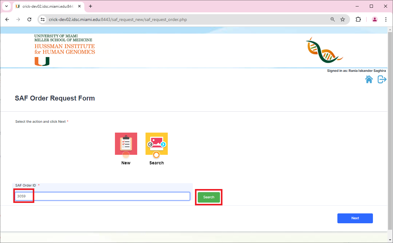 Type in the SAF Order ID that you want to clone and click ‘Search’